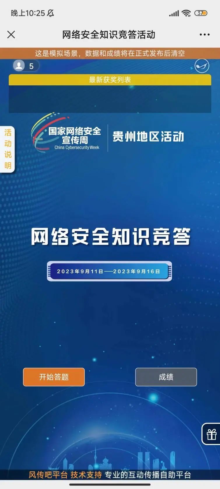 6.竞答活动持续6天,将从6天累计得分最高者中随机抽取20名用户发送相关奖励。