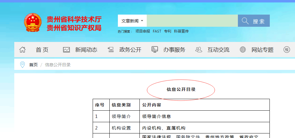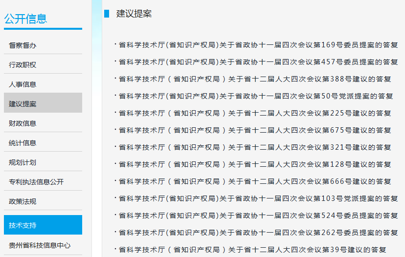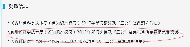 按照《贵州省2016年政务公开工作要点》要求,及时在厅(局)门户网站公开《贵州GG扑克 2015年度部门决算及“三公”经费决算信息》、《贵州GG扑克 2016年财政预算及“三公”经费预算信息》、各类统计信息及专利执法信息(图5、图6、图7)。对科技计划项目、成果转化奖等项目进行网上公示,主动接受社会监督,增强了科技管理透明度(图8)。