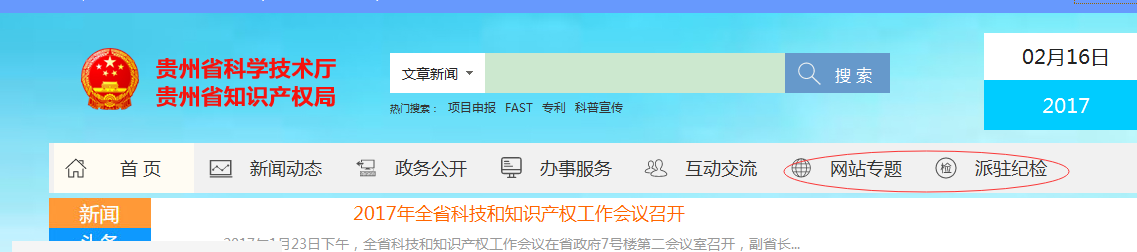 2016年进一步完善了《贵州GG扑克 (省知识产权局)政府信息公开指南》、《贵州GG扑克 政府信息公开目录》(图2),根据《贵州省人民政府办公厅关于进一步加强政府网站建设管理工作的通知》(【2016】19号)文件精神要求,及时更新升级门户网站页面,增加网站专题、派驻纪检等栏目(图3),在显著位置显示服务和热线服务电话、举报投诉邮箱,进一步提高了机关工作的透明度和管理服务效能。